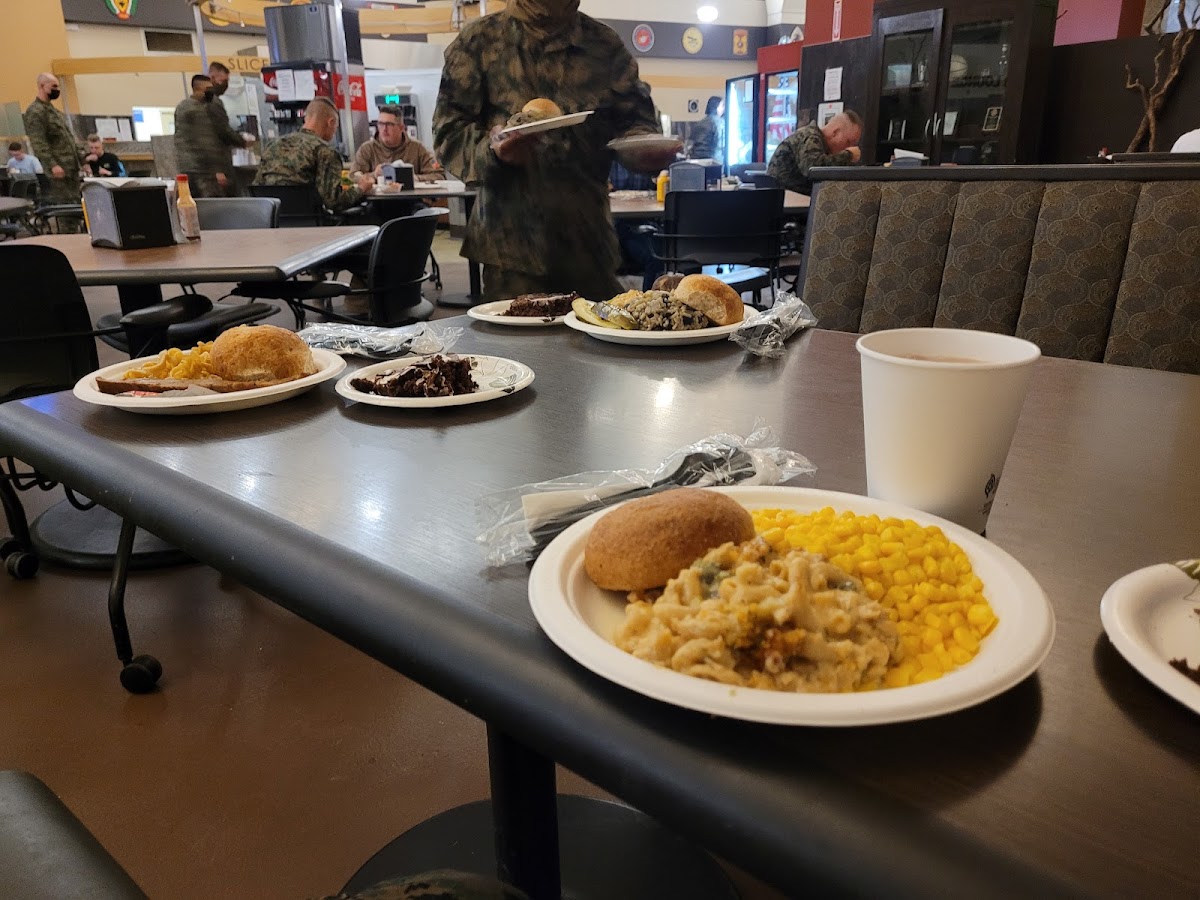 Not bad for a chow hall. Some of the best servers and staff I've interacted with at any chow hall. The head cook is a great guy, who really cares about the quality of the food. It would be even better, if they let the guy color outside the lines more.